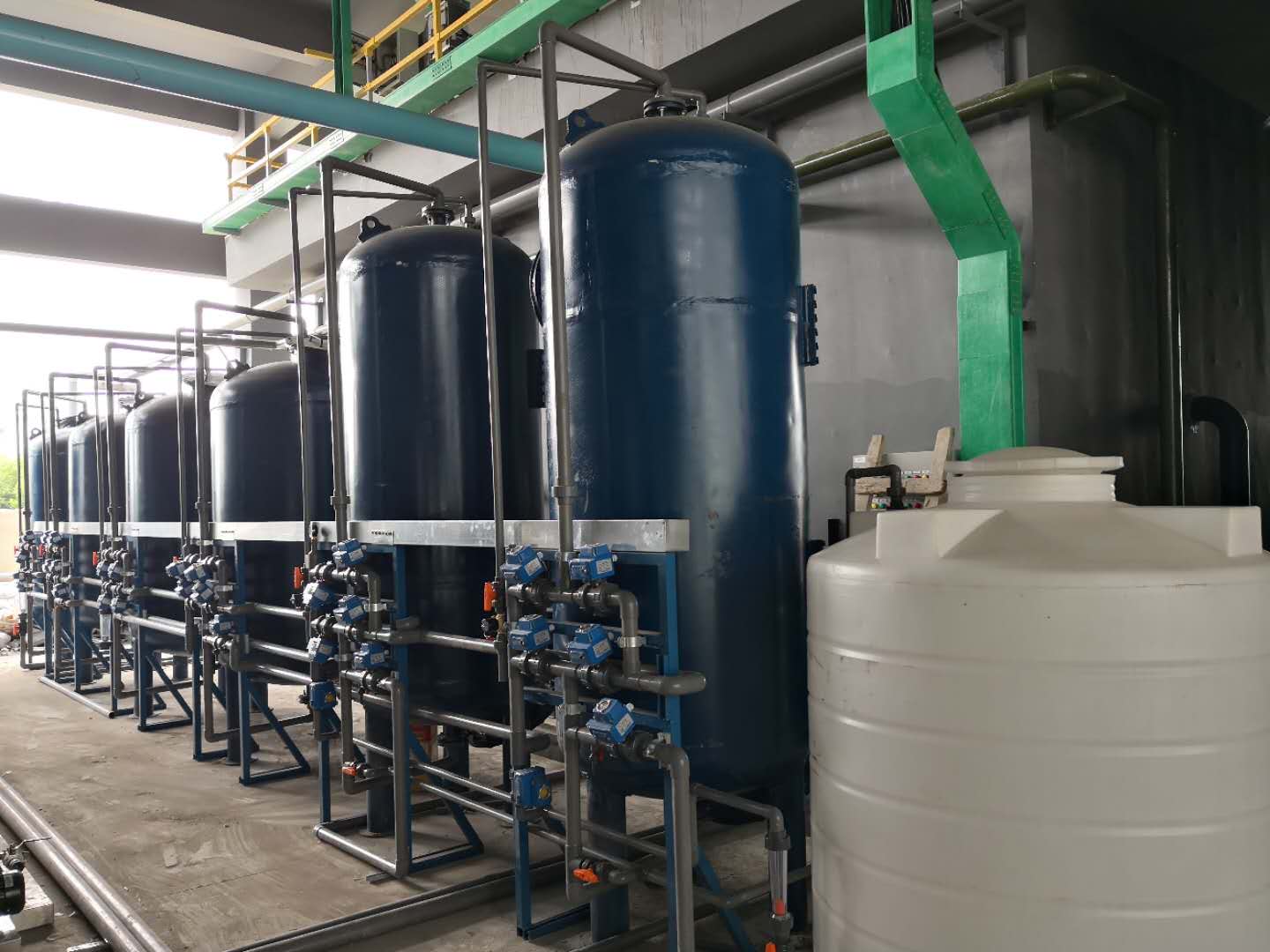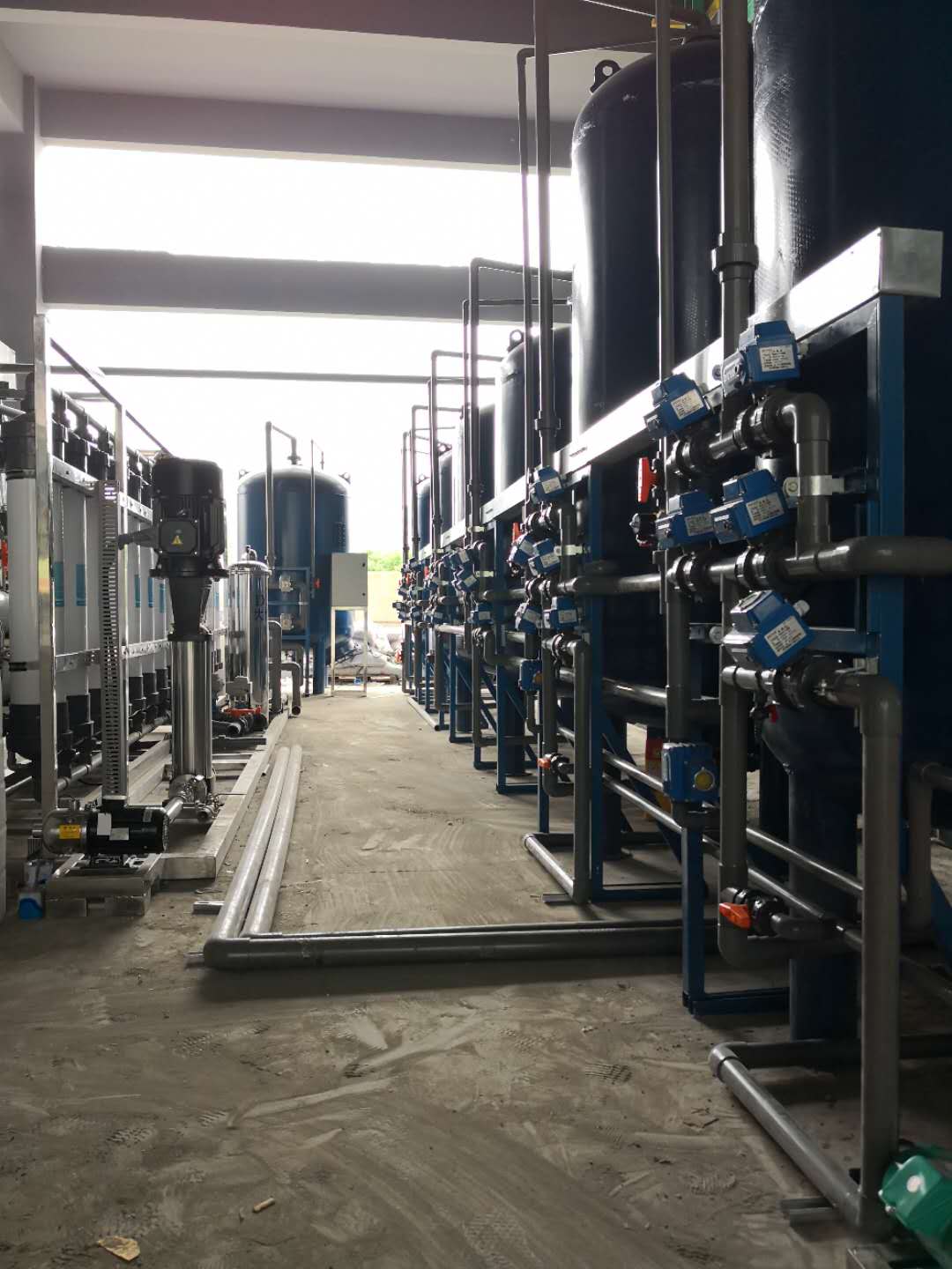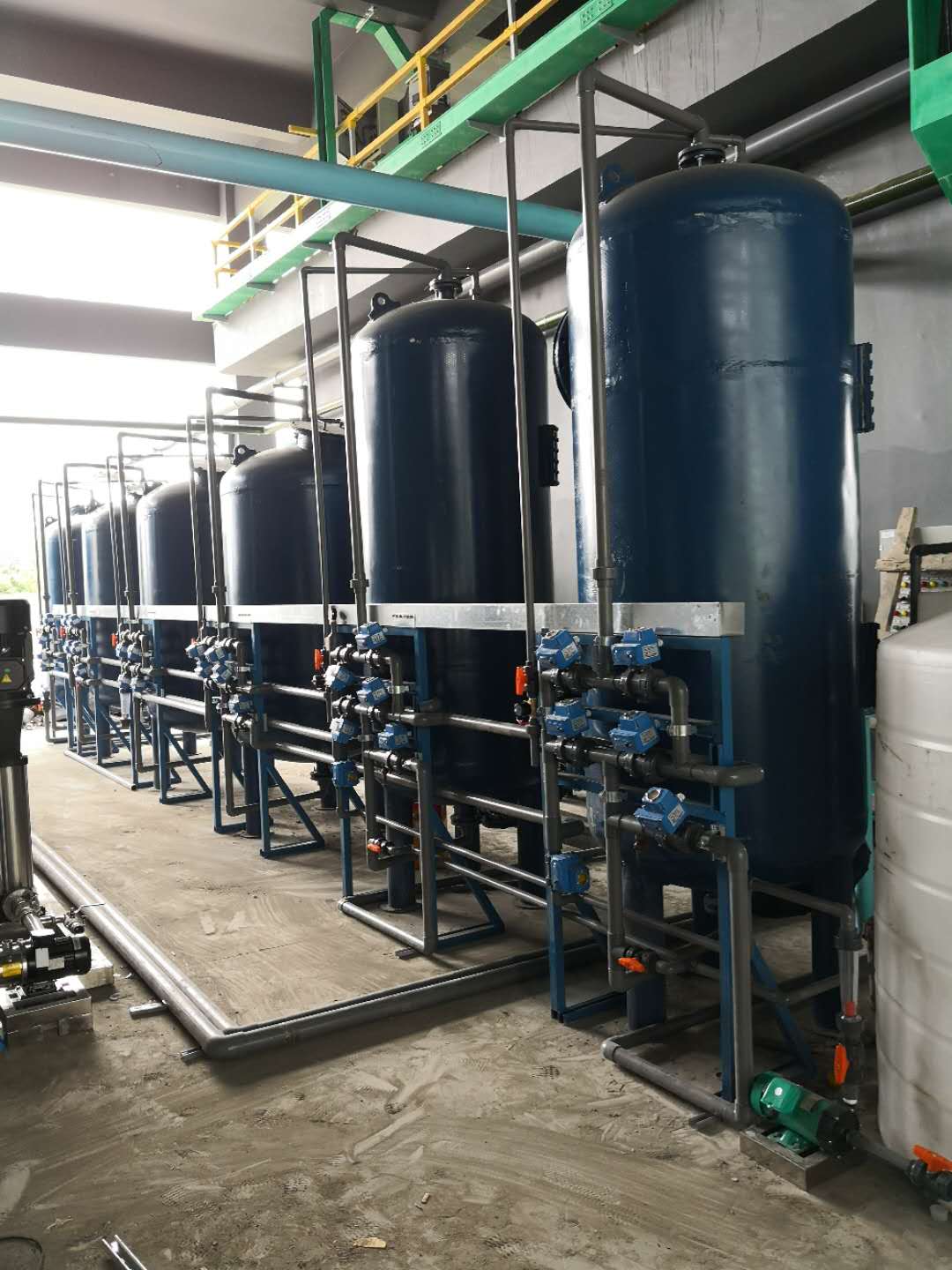 電子廠廢水經過混凝沉淀處理后,經過本處理系統,處理工藝為:多介質過濾器+活性炭過濾器+保安過濾器+超濾主機系統+抗污染反滲透主機系統+ 淡水回用到生產環節 (濃水經過鰲合樹脂吸附后達標排放)。