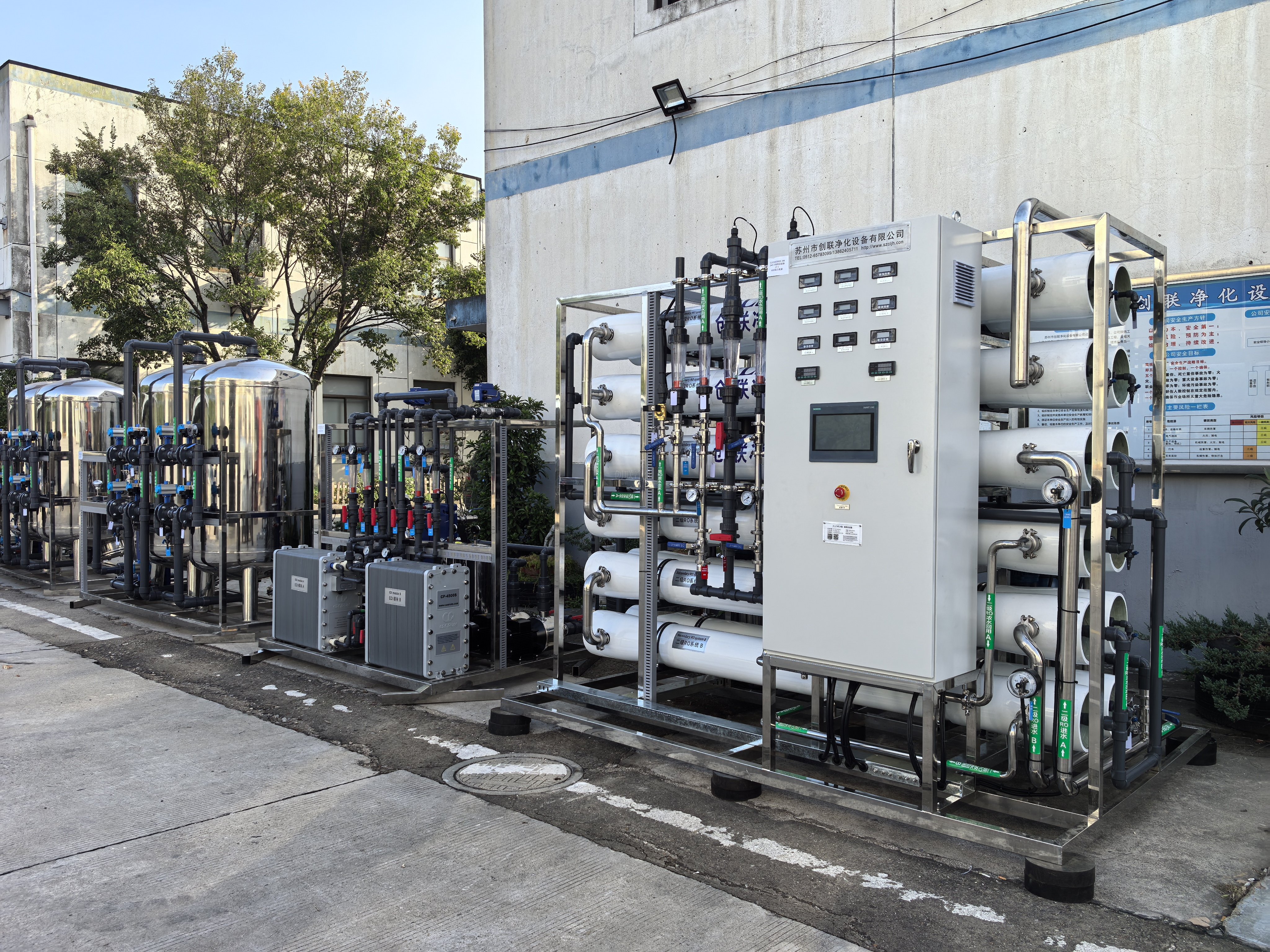 因生產(chǎn)需要對水質(zhì)的要求比較嚴(yán)苛,特別是金屬離子含量。本設(shè)備采用多介質(zhì)過濾器+活性炭過濾器+二級反滲透+EDI+拋光混床工藝,配套殺菌和TOC去除器,水質(zhì)指標(biāo)按照18兆歐以上設(shè)計,設(shè)備處理能力達(dá)到8t/h。