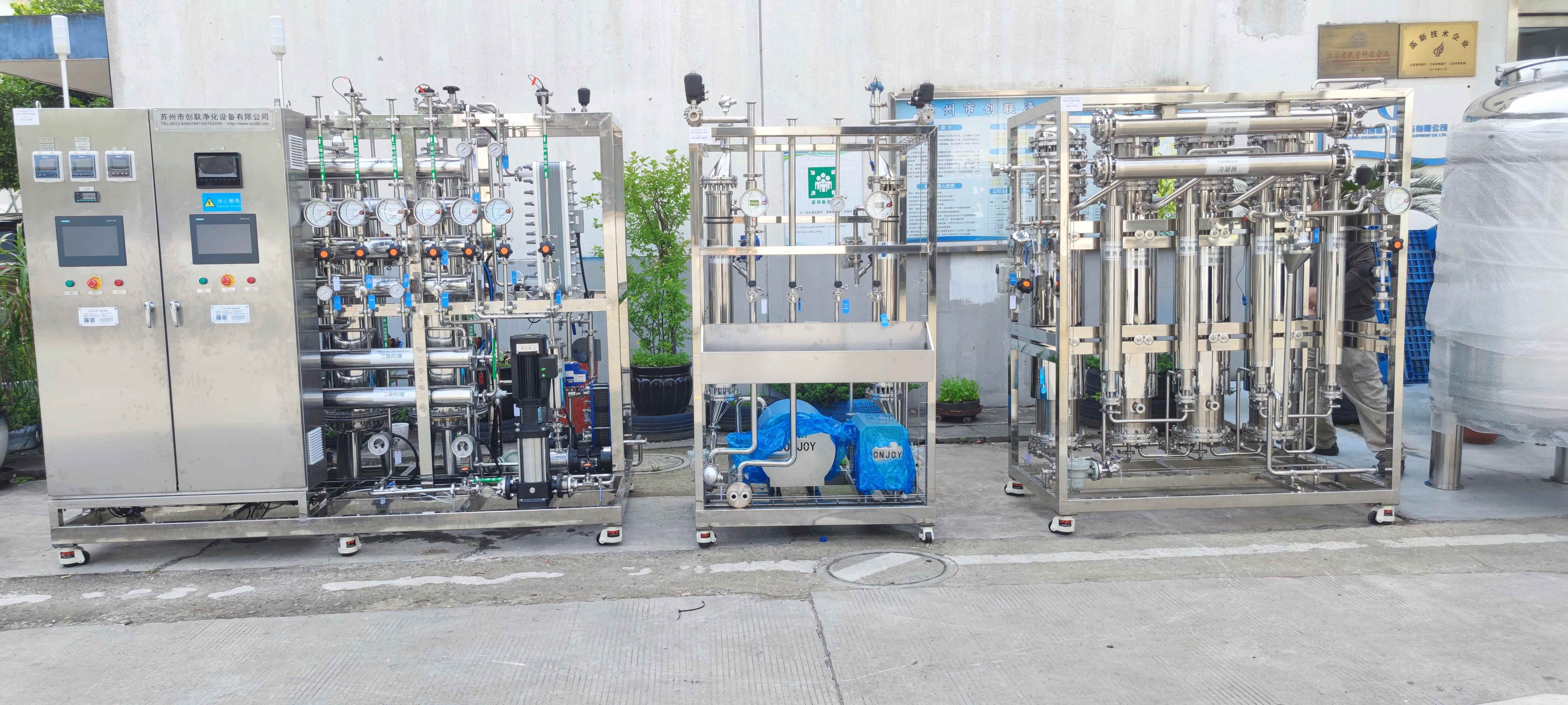 處理工藝:純化水設備采用預處理+二級反滲透+EDI處理工藝,預處理和分配系統(tǒng)采用巴氏滅菌工藝。注射水設備采用多效蒸餾工藝。