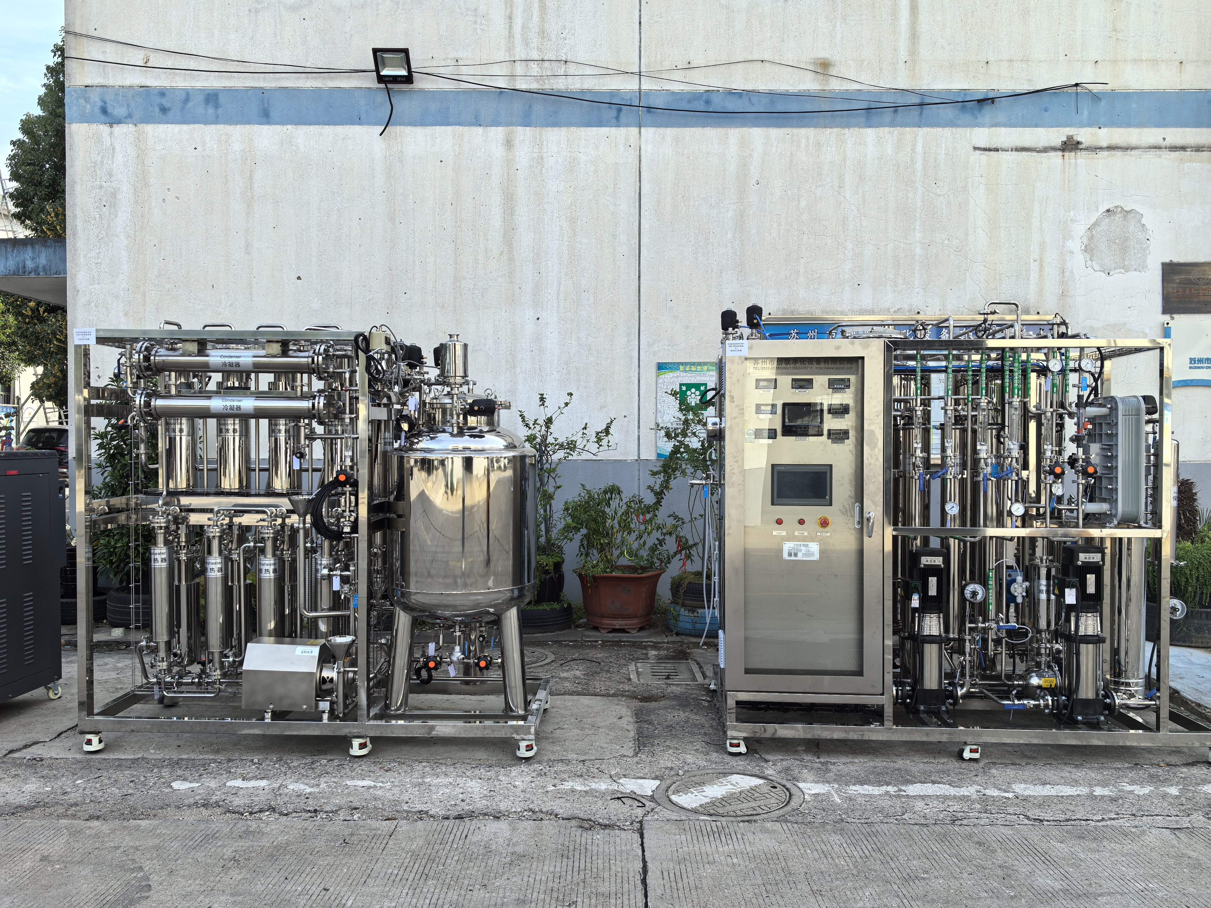 該項目500L/h純化水設備+100L/h注射水設備設備產水水質均符合藥典2025版GMP標準,純化水采用二級Ro+EDI+臭氧滅菌工藝注射水采用四效蒸發工藝,配備電加熱鍋爐配置觸摸屏+PLC全自動控制系統,實現無人值守,全套液位控制,壓力保護,Ro自清洗功能,恒壓變頻供水,回水水質及流速在線監測控制等。